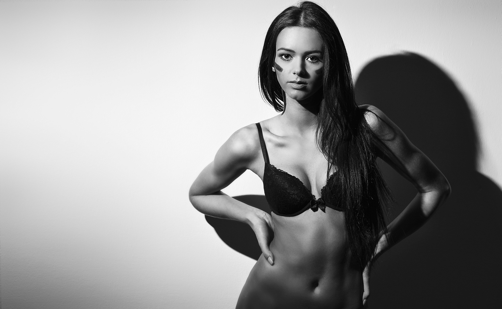 Wallpaper girl, long hair, brunette, model, lingerie